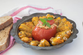 duszone mięso nadziewane papryką w sosie pomidorowym