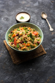 Zdjęcie "Sweet Corn Upma, makai rava uppittu made using with or without semolina , healthy Indian breakfast" może być wykorzystywane do celów osobistych i komercyjnych zgodnie z warunkami zakupionej licencji Royalty-free. Obraz jest dostępny do pobrania w jakości wysokiej rozdzielczości do 5760x3840.