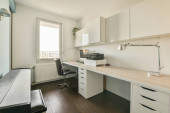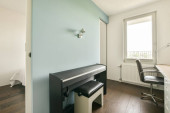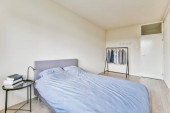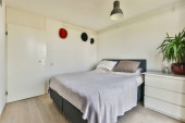Zdjęcie "Komfortowe łóżko umieszczone w pobliżu zielonej ściany w nowoczesnym minimalistycznym stylu mansard sypialnia z oknami" może być wykorzystywane do celów osobistych i komercyjnych zgodnie z warunkami zakupionej licencji Royalty-free. Obraz jest dostępny do pobrania w jakości wysokiej rozdzielczości do 5760x3840.