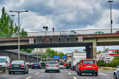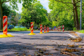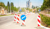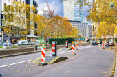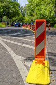 Berlin, Germany - May 29, 2022: Protected bike lanes on a main street to improve road safety.