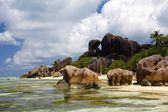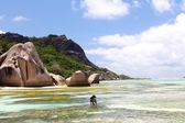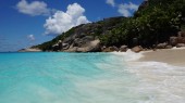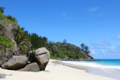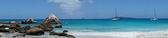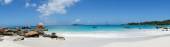 na plaży przed Seszele łodzi biały żagiel żagle na błękitne morze