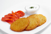 Zdjęcie "Naleśniki ziemniaczane z łososiem" może być wykorzystywane do celów osobistych i komercyjnych zgodnie z warunkami zakupionej licencji Royalty-free. Obraz jest dostępny do pobrania w jakości wysokiej rozdzielczości do 5760x3840.