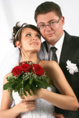 zbliżenie portret kaukaski młodej i pana młodego z odrobina
