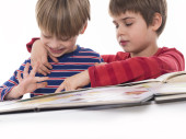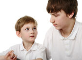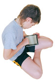 dwoje dzieci za pomocą ekranu dotykowego komputera typu tablet pc