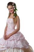 Młoda atrakcyjna kobieta w kolorze liliowym balu przebierańców