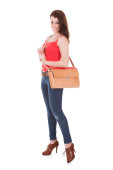 blondynka z torba podróżna