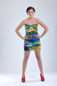 brunetka kobiece kobieta model na białym tle na białym tle pozowanie