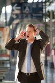 mały człowiek biznesu przygniecenia przez stóp olbrzymi busines