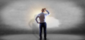 mały człowiek biznesu przygniecenia przez stóp olbrzymi busines