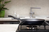 patelnia i naczynia do gotowania w kuchni, miejsce na tekst