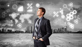 Zdjęcie "przedsiębiorca i cyfrowych ekranów" może być wykorzystywane do celów osobistych i komercyjnych zgodnie z warunkami zakupionej licencji Royalty-free. Obraz jest dostępny do pobrania w jakości wysokiej rozdzielczości do 5760x3840.