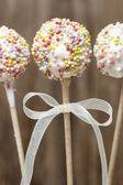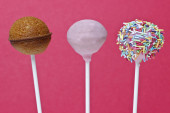 Różowe i żółte ciasto wyskakuje na białym tle na białym tle