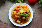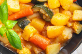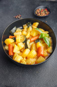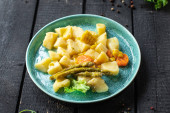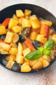 ragout vegetable stew potatoe, carrot, zucchini fresh dish healthy meal food snack diet on the table copy space food background rustic keto or paleo diet veggie vegan or vegetarian food no meat