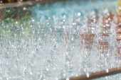 Street fountain in the park of Tashkent. flowing refreshing water in a granite fountain in uzbekistan