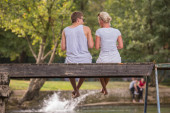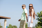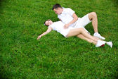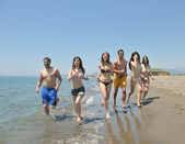 szczęśliwa młoda para baw się na plaży