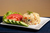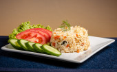 ryż na białym talerzu