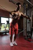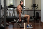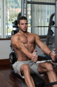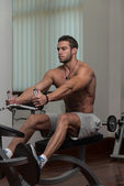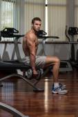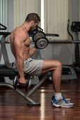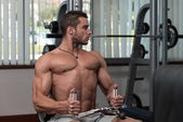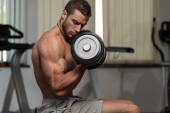 Mężczyzna sportowiec wagi ciężkiej ćwiczeń na Biceps