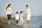 szczęśliwa młoda rodzina baw się dobrze na plaży