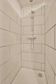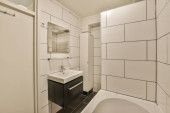 Zdjęcie "Stylowa łazienka wystrój wnętrz z białym WC i wanną ze szklanym prysznicem w nowoczesnym apartamencie" może być wykorzystywane do celów osobistych i komercyjnych zgodnie z warunkami zakupionej licencji Royalty-free. Obraz jest dostępny do pobrania w jakości wysokiej rozdzielczości do 5760x3840.