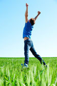Zdjęcie "Man skoki na zielone pole" może być wykorzystywane do celów osobistych i komercyjnych zgodnie z warunkami zakupionej licencji Royalty-free. Obraz jest dostępny do pobrania w jakości wysokiej rozdzielczości do 5760x3840.
