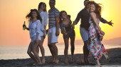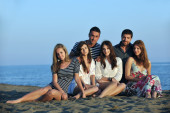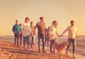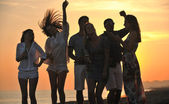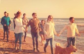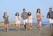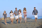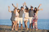Szczęśliwa młoda Grupa zabawy na plaży
