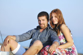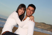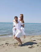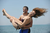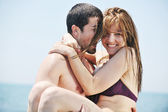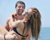 szczęśliwa młoda para baw się na plaży