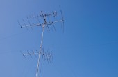 Starej anteny telewizyjnej na tle błękitnego nieba
