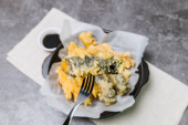 plant-based pesto and spinach gnocchi with pine nuts, healthy vegan food recipes