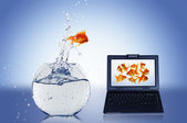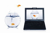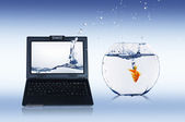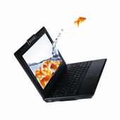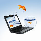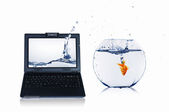 złotą rybkę na ekranie notebooka
