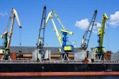Zdjęcie "Bulk carrier with open storage tanks in port bulk terminal, port cranes painted in the colors of the Ukrainian flag with buckets ready for work" może być wykorzystywane do celów osobistych i komercyjnych zgodnie z warunkami zakupionej licencji Royalty-free. Obraz jest dostępny do pobrania w jakości wysokiej rozdzielczości do 5760x3840.