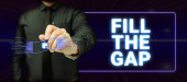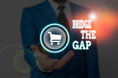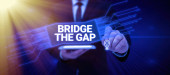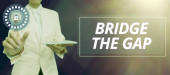 Znak tekstowy pokazujący most The Gap, Business showcase Pokonaj przeszkody Wyzwanie Odwaga Upodmiotowienie
