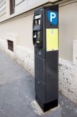 Paid payment for parking in Zurich city. Payment machine at parking lot by street.