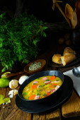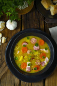 Zdjęcie "Serdeczna zupa grochowa z boczkiem i kiełbasą" może być wykorzystywane do celów osobistych i komercyjnych zgodnie z warunkami zakupionej licencji Royalty-free. Obraz jest dostępny do pobrania w jakości wysokiej rozdzielczości do 5760x3840.