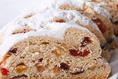 Boże Narodzenie owoce chleb Stollen zbliżenie na talerzu. poziome