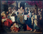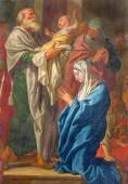 Bruksela - 21 czerwca: Farba sceny jako Jezus Chrystus w wieku 12 lat nauczania w świątyni z kościoła św Mikołaja 21 czerwca. 2012 w Brukseli.