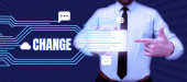 Podpis tekstowy prezentujący Make A Change, Business overview Wypróbuj nowe rzeczy Evolve Evolution Improvement Growth Mature Woman Holding Tablet with Power Button Sign And Otrzymywanie ważnych danych.