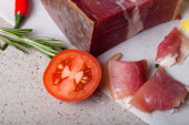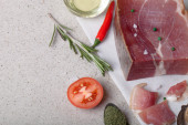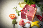 Zdjęcie "Jamon kawałek leżącego na stole z przyprawami" może być wykorzystywane do celów osobistych i komercyjnych zgodnie z warunkami zakupionej licencji Royalty-free. Obraz jest dostępny do pobrania w jakości wysokiej rozdzielczości do 5760x3840.