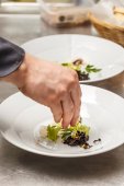 Szef kuchni, otoczony kuchnią, przygotowuje potrawę przed podaniem jej gościom..