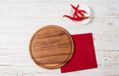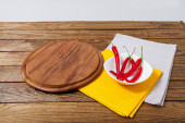 gorąca czerwona papryka i serwetka papierowa na starym drewnianym stole, koncepcja wakacyjna