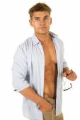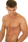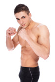 Człowiek bez koszuli czerwone spodenki walki rękawice na