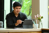 Zdjęcie "Asian man interior designers working with laptop and color palette, sketching and planning construction project on office desk." może być wykorzystywane do celów osobistych i komercyjnych zgodnie z warunkami zakupionej licencji Royalty-free. Obraz jest dostępny do pobrania w jakości wysokiej rozdzielczości do 5760x3840.