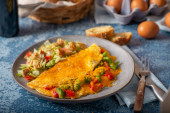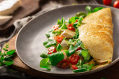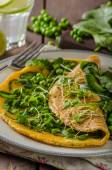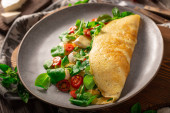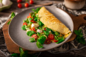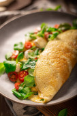 Delicious bio eggs omelette with vegetables and cheese