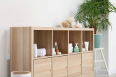 Zdjęcie "Półka z różnymi akcesoriami kąpielowymi i rośliną domową we wnętrzu łazienki" może być wykorzystywane do celów osobistych i komercyjnych zgodnie z warunkami zakupionej licencji Royalty-free. Obraz jest dostępny do pobrania w jakości wysokiej rozdzielczości do 5760x3840.