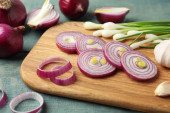 Zdjęcie "Cięcie czerwonej cebuli na drewnianej desce, zbliżenie" może być wykorzystywane do celów osobistych i komercyjnych zgodnie z warunkami zakupionej licencji Royalty-free. Obraz jest dostępny do pobrania w jakości wysokiej rozdzielczości do 5760x3840.