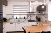 Zdjęcie "Jesienne wnętrze kuchni. Czerwone i żółte liście i kwiaty w wazonie i dynia na białym tle." może być wykorzystywane do celów osobistych i komercyjnych zgodnie z warunkami zakupionej licencji Royalty-free. Obraz jest dostępny do pobrania w jakości wysokiej rozdzielczości do 5760x3840.