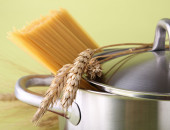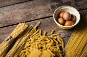 Kuchni włoskiej / rondla z makaronem / na białym tle biały