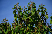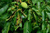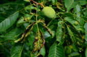 zimuje w opadłych liściach, łuskach strąków orzechów i samych owocach pod drzewem. kiełkować, owocowe ciała grzybów z zarodnikami zimowymi dojrzewają. uwalniają wilgoć i wiatr i są przenoszone