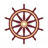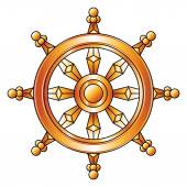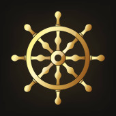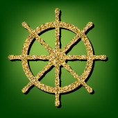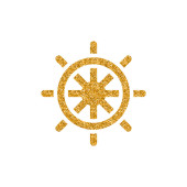 Ręcznie rysowane koła kierownicy statku ikona w złotej folii tekstury wektor ilustracji