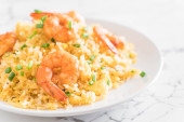 domowe smażone krewetki smażony ryż na talerzu w stylu tajskim - azjatycki styl żywności