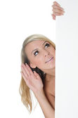 kobieta przytrzymanie puste billboard